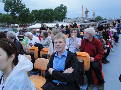 Der Wald bildet den östlichsten Ausläufer der Stadt. Er wird im Norden begrenzt von dem Ort Vincennes mit dem gleichnamigen Schloss. Abgesehen von den Waldflächen (365 ha) mit ihren Wanderwegen (60 km) und Reitwegen (19 km), den drei künstlichen Seen und ihren Inseln sowie dem Blumenpark Parc floral de Paris (28 ha), sowie Forschungseinrichtungen, darunter die Botanikschule École Du Breuil und ihr Arboretum, ein Modell-Bauernhof und eine Schule für die Ausbildung von Blindenführhunden, werden Fahrräder vermietet und Ruderboote, mit denen man zu den Inseln übersetzen kann. Für das leibliche Wohl sorgen zahlreiche Kaffeegärten und Restaurants. Die größte Begeisterung rief bei uns der Park Floral hervor. Ein wahres Meer von Azaleen in allen Farben. Unser Abschiedshighlight war die nächtliche Bootstour mit dem Bateaux Mouches auf der Seine. Schon bei der Busfahrt zur Anlegestelle erklärte uns Ingeborg die Prachtbauten am Ufer. Hochbetrieb am Boot. Wie an einer Perlenschnur aufgereiht entfaltet Paris nun im Nachthimmel seine ganze Einmaligkeit der Baukunst. Nie hätte Monsieur Eiffel gedacht, dass sein erst so verachtetes Stahlgestell zum Wahrzeichen der Stadt würde. Wie ein Pfeil aus purem Gold sticht er in den Nachthimmel. Doch was ist das – wurden die Clochards unter den Brücken etwa vom lauten Partyvolk vertrieben? Gerti Plangger