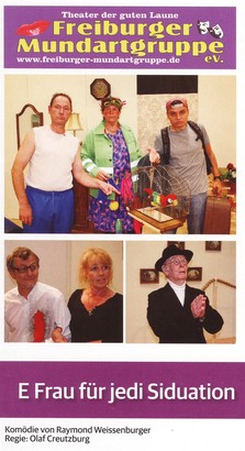 im Bürgerhaus Zähringen- Haltestelle Tullastr. Titel: „E'Frau für jedi Siduation“ Kumedi in 3 Akten.