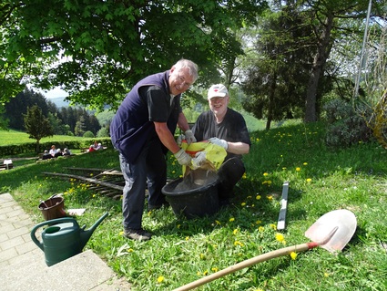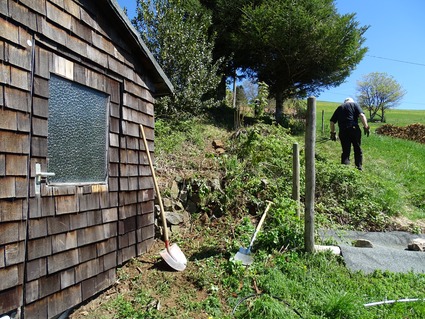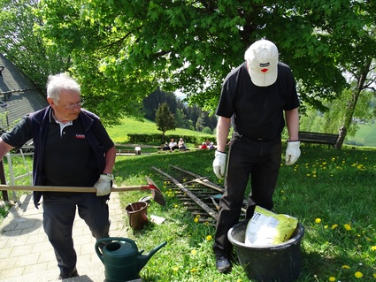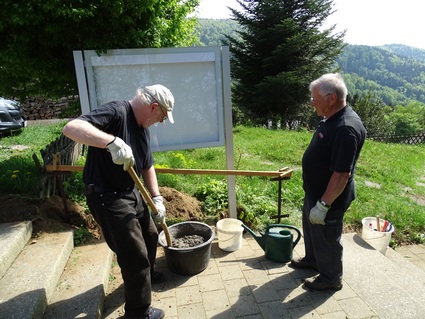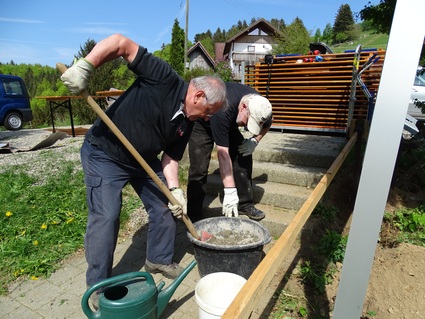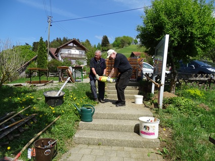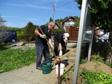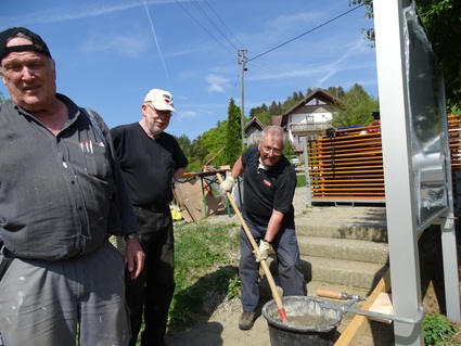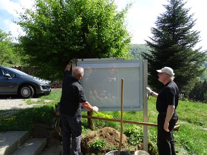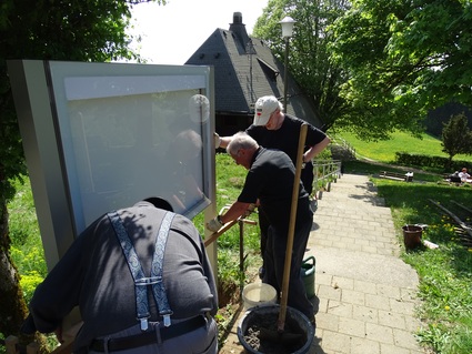 Installation des Schaukasten im Garten unseres Wanderheimes