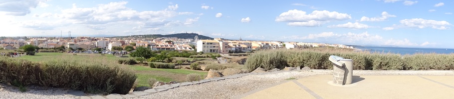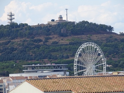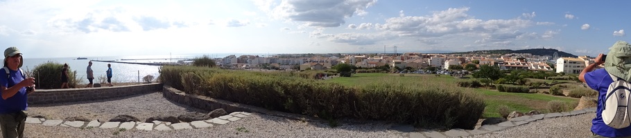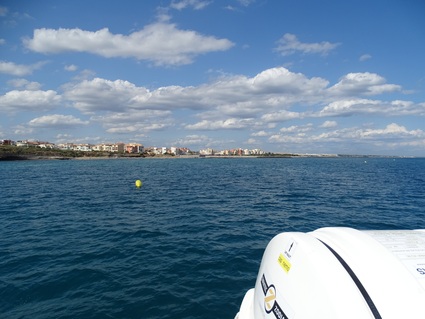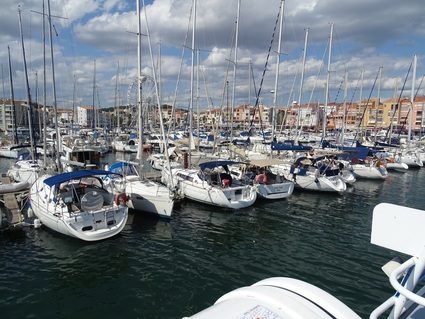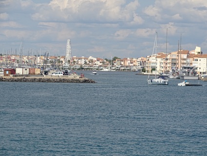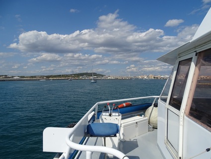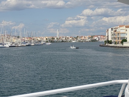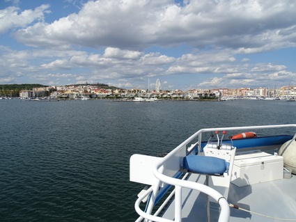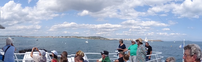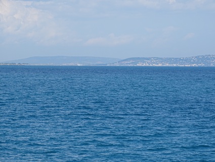 Wir fahren mit dem Schiff entlang der Küste von Cap d Agde.