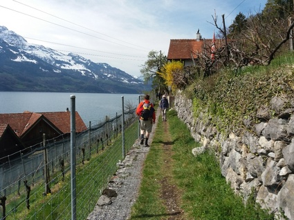 führt in teils mediterranem Ambiente längs des Walensees von Walenstadt nach Fly.