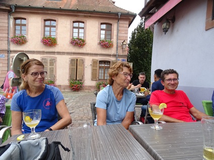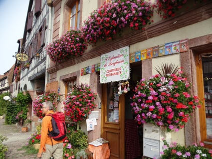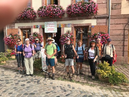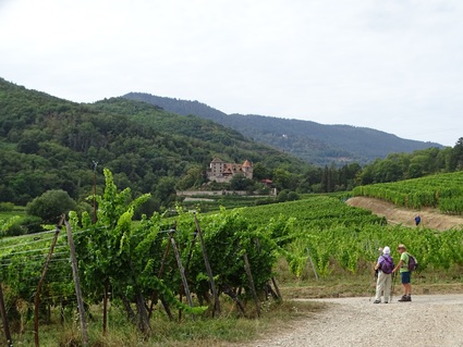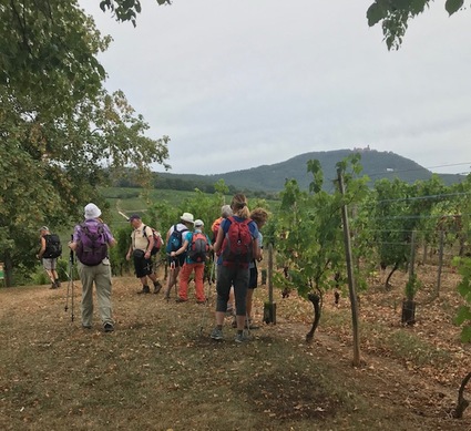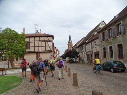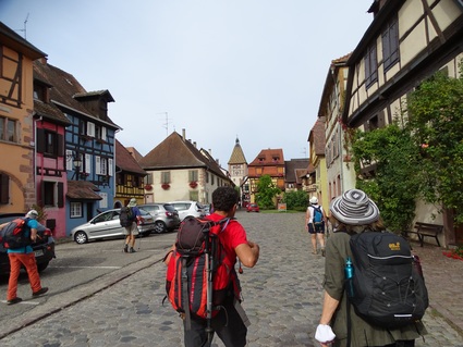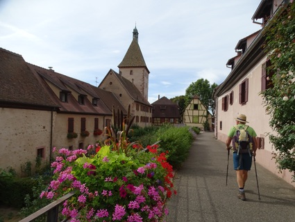 . Wanderung in der Region Bergheim/Elsass, mittelalterliches befestigtes Dorf im elsässischen Weinberg