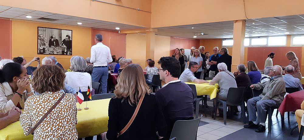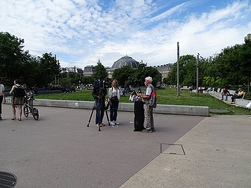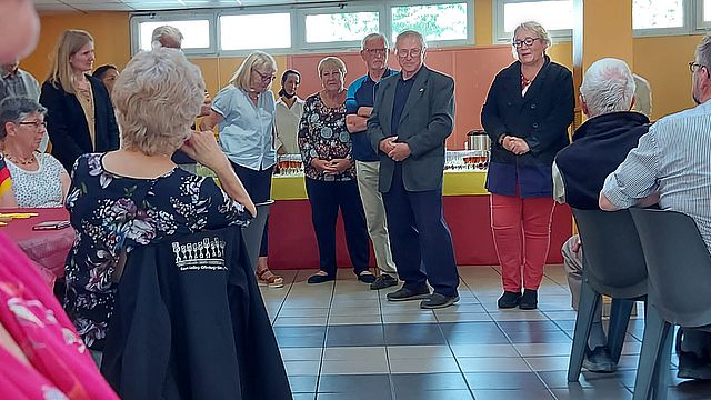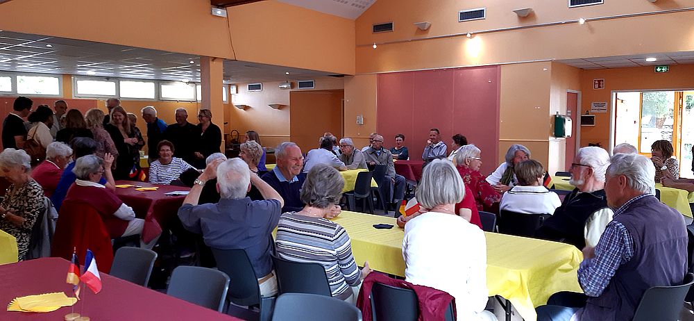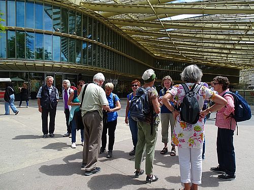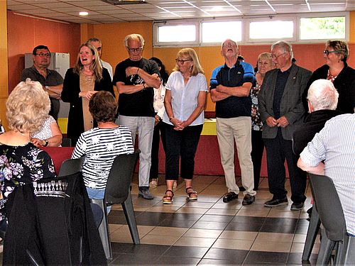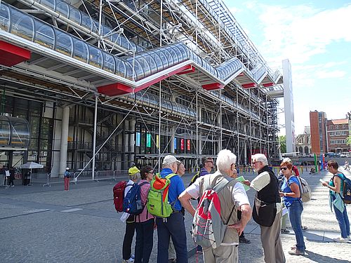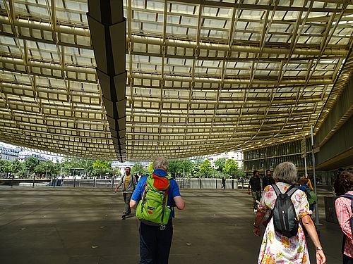 Wieder volles Programm: Paris zu Fuß (Tram + Metro) : Place Monge ; Bastille; Place de Vosges; Hotel de Ville; Beaubourg; St. Eustachgärten; Opera; ![]() Boulevard Haussmann mit den großen Kaufhäusern. In der Galerie La Fayette ließen wir die Stadtbesichtigungen ausklingen. Wieder im Saal Léo Ferré wurden wir von der Stadtverwaltung eingeladen. Die Bürgermeisterin, der Gemeinderat, der Verbindungsmann der Partnerstädte, die Organisatoren und natürlich alle unsere lieben Geister, die uns so liebevoll umsorgt haben – alle waren sie da. Nächsten Jahr wird dann Hochdorf besucht und wir freuen uns jetzt schon darauf. So sagen wir jetzt erst einmal ein über-kräftiges Dankeschön für diese erlebnisreichen Tage. Und wie schon bei unserer Ankunft wurden wir nach dem Aperitivprösterchen mit unwiderstehlichen Köstlichkeiten verwöhnt. Gerti Plangger