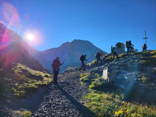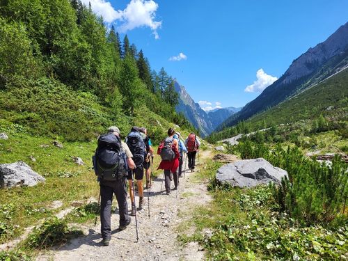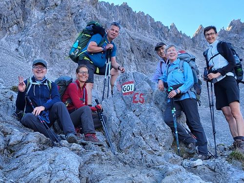 Gestärkt und gut ausgeruht schweben wir mit der Venet-Seilbahn von Zams in die Höhe. Wir nehmen den Panoramaweg, der seinem Namen alle Ehre macht. Von den Eindrücken berauscht machen wir eine kurze Rast bevor wir nach Wenns im Pitztal (976 m) weiter absteigen. Von dort bringt uns der Bus nach Mittelberg auf 1734 m. Nachdem wir uns mit Wasser versorgt und den Rucksack in die Materialseilbahn verladen haben, geht es steil bergauf. Vorbei an einem imposanten Gletscher-Wasserfall und der immer kleiner werdenden Geltscherzunge des Mittelbergferners. Wir überwinden insgesamt 1000 Höhenmeter bis zur Braunschweiger Hütte (2760 m). Auf der privat geführten und frisch renovierten Hütte kommen wir in Zimmerlager unter und genießen eine warme Dusche – eine Wohltat in der höchst gelegenen Übernachtungsmöglichkeit des E 5. Direkt am Gletscher spüren wir die Kälte des Gletscherwindes schon kurz nach Sonnenuntergang und verabschieden uns früh ins Bett. Die Sonne weckt uns auch am fünften Tag und verspricht einen grandiosen Berg Tag. So starten wir gut gelaunt auf zum Pitztaler Jöchl (2.998 m). Nach dem mühsamen Aufstieg werden wir mit unglaublichen Panorama-Ausblicken belohnt. Wir machen kurz Rast und genießen die Sonne und die einmalige Stimmung in diesen Höhen. Über steiniges Gelände müssen wir uns an Ketten / Seilen festhalten und vorsichtig den Weg nach unten beschreiten. Wir streifen dabei den Rettenbachferner, der auch immer mehr abschmilzt. Hier ist der Ski-Zirkus zu Hause und wir wundern uns darüber, dass der Schnee auch auf dieser Höhe unter Schutzfolie vor dem Abschmelzen bewahrt werden muss. Unten angekommen warten wir auf der wohl höchst gelegenen Bushaltstelle (2.663 m) auf unseren Transfer nach Vent im Ötztal (1.896 m) Die Fahrt geht in Serpentinen das Rettenbachtal herunter nach Sölden. In dem mondänen Alpenort gönnen wir uns einen Cappuccino und steigen um in den Bus nach Vent. Die Fahrt führt uns an wunderschönen alpenländischen Weilern und Dörfern vorbei. Noch früh am Mittag beginnt unser Aufstieg. Dieses Mal sind es nur 630 Höhenmeter, allerdings komplett mit Gepäck, ohne Materialtransport. Wir werden begleitet von pfeiffenden Murmeltieren, die ihre Freunde vor uns warnen. Total unbegründet, wie wir finden. Die Schafe sind uns wohl-gesonnener und bleiben stehen zum Streicheln. Wie wir später erfahren, sind dies Schafe aus dem Vinschgau in Südtirol, die den Sommer hier verbringen. Unsere letzte Nacht auf dem E5 verbringen wir auf der Martin-Busch-Hütte. Eine Alpenvereinshütte der Sektion Berlin des Deutschen Alpenvereins auf 2.501 m. Auch hier sind wir in Zimmerlagern untergebracht. Früh geht’s ins Bett und auch früh wieder raus. Wir starten bereits um 7 Uhr Richtung Similaun-Gletscher. Wir genießen die wärmenden Sonnenstrahlen und wandern vorbei an Glocken tragenden Schafherden. Den gut markierten Weg hinauf zum Niederjoch, vorbei am Abzweig zum Ötzi-Fundort. Auf den letzten Metern vor der Similaunhütte treffen wir den Schäfer aus dem Vinschgauer Schnalstal mit seinem Hütehund. Er ist unterwegs, um die 4000 Schafe zurück nach Vent zu treiben. In diesem heißen Jahr muss er dies täglich tun, da die Schafe immer weniger Futter in den Tallagen finden und zurückdrängen. Die Similaunhütte im Schnalskamm der Ötztaler Alpen, auf der Grenze zwischen dem österreichischen Nordtirol und dem italienischen Südtirol, liegt auf 3.019 m. Hier eröffnet sich ein atemberaubendes Panorama und wir können mehreren Seilschaften bei der Gletscherbegehung zusehen. Ein letztes Mal geht es nun bergab und das gleich richtig lange. Insgesamt 1.370 Höhenmeter steigen wir zum Vernagt-Stausee ab. Wehmütig und ein bisschen stolz wandern wir das Tisental herunter, wohl wissend, dass dies die letzte gemeinsame Wanderung mit unserer Gruppe ist. Bei der Jausenstation Tisenhof beschließen wir unsere Alpenüberquerung und bedanken uns bei Jaschar, der uns diese unbeschreibliche Alpenüberquerung ermöglichte. Nach einem kurzweiligen Taxitransfer erreichen wir die Jugendherberge in Meran. In Zweibettzimmern mit eigener Dusche waschen wir uns die Strapazen des E 5 ab und feiern bis in die Nacht in Meran unsere Heldentaten auf dem E 5. Veronika und Christoph Sumser im August 2022 |