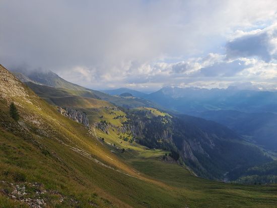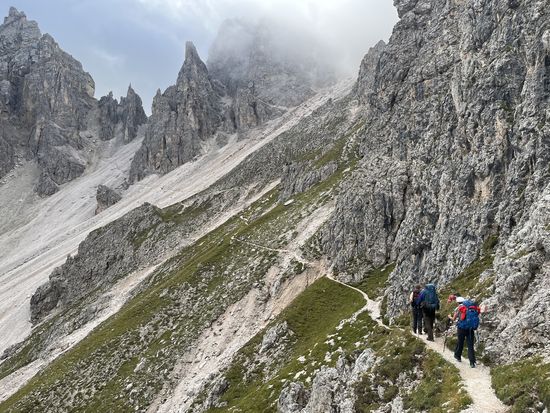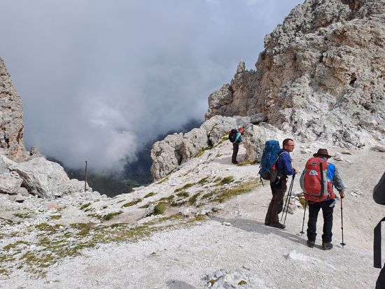 Nebelschwaden. Uns steht ein langer Aufstieg zur Furc. dela Roa bis auf