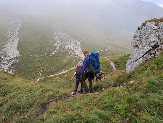 weiter zu einer windgeschützteren Rast. Der weitere Abstieg bis zur