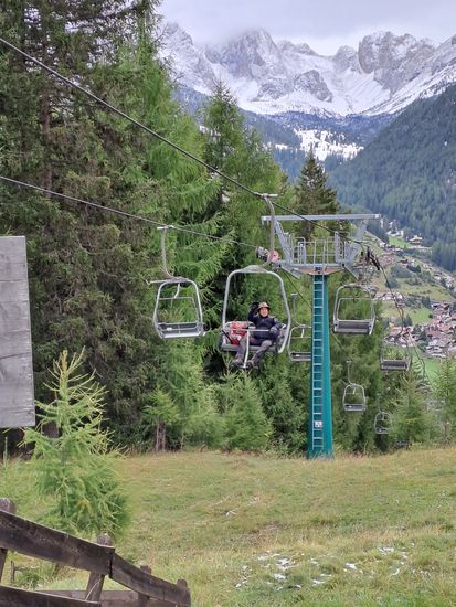 ist. Von St. Christina fahren wir mit dem Sessellift bis zum Sportzentrum